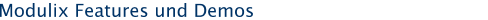 Im Moment bereiten wir die Inhalte für diesen Bereich vor. In Zukunft finden Sie hier Beschreibungen aktueller und zukünftiger Features sowie generelle Tips zum Einsatz von Modulix in verschiedenen Szenarien Daneben können Sie sich in unserem Online Demo Bereich einen visuellen Eindruck von Modulix verschaffen
